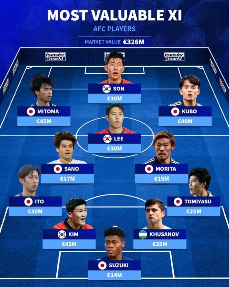 亞洲德轉(zhuǎn)身價最高陣:孫興慜、三笘薫、胡桑諾夫在列,日本占7席 -