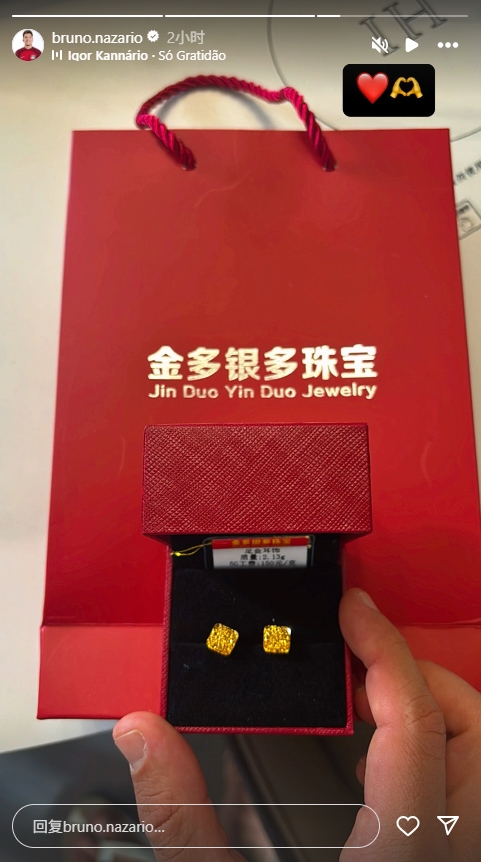 04月26日訊 昨日是河南外援納薩里奧與妻子結(jié)婚12周年紀(jì)念日,納薩里奧給妻子買了一對(duì)足金耳飾。